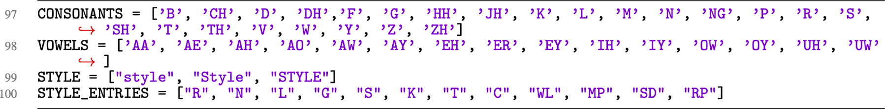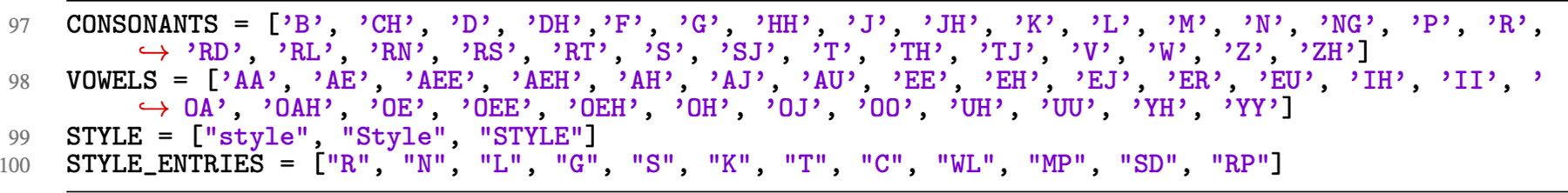 Figure A2. Section of SweFA’s Python code that defines monophones.