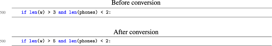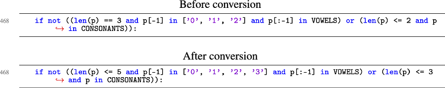Line 468 should be changed such that it can accommodate monophones longer than three ASCII characters as well as the additional stress codings 0, 1, 2, and 3. This is shown in Figure A3. Line 500 needs a small change as well, shown in Figure A4.