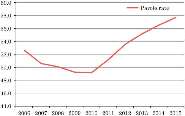 Figure 7 Parole rate. For a colour figure, see the online version of the article Source: Research and Training Institute, Ministry of Justice, Japan (2016:65).